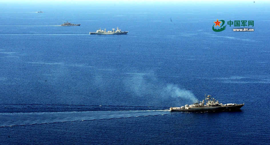 按照联合导演部下发的导调文书,今天海上联合集群指挥所组织了中俄参演舰艇在漂泊和航行两种不同状态下的海上防御,内容包括防空、反舰、反潜、反蛙人和放生化等行动。