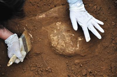 陈靓穿着白色的防菌工作服,戴着塑胶手套,指挥现场挖掘。“轻轻地挖,挖得尽量完整。”