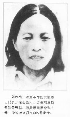 1920年代,苦水里泡大的刘秋菊被姐姐做主嫁到了琼山县一户郑姓人家,出嫁的那年,她才16岁,婚姻没有使她摆脱困难的生活。1925年,海南岛掀起了革命高潮,秋菊参加平民夜校学习,她入了党,3年后成为我们党在琼山地方党组织的交通员。