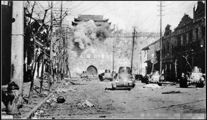 1937年12月12日,日军炮火击中南京中华门的瞬间。 (资料图片)