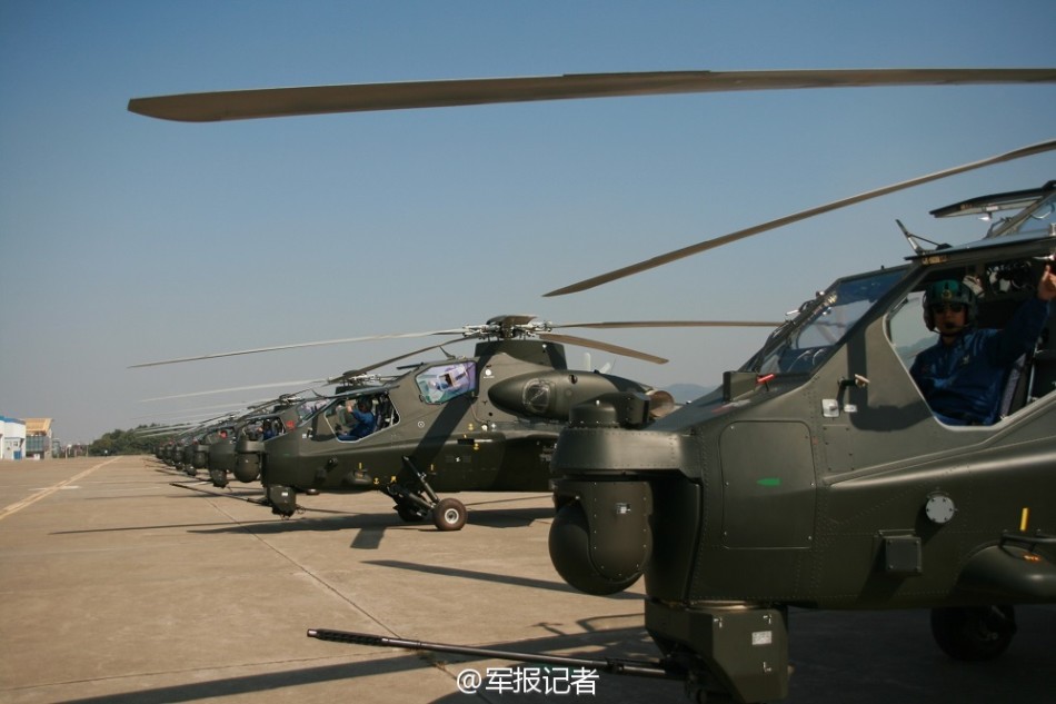 军方曝我军武直10攻击直升机群成排停靠猛图