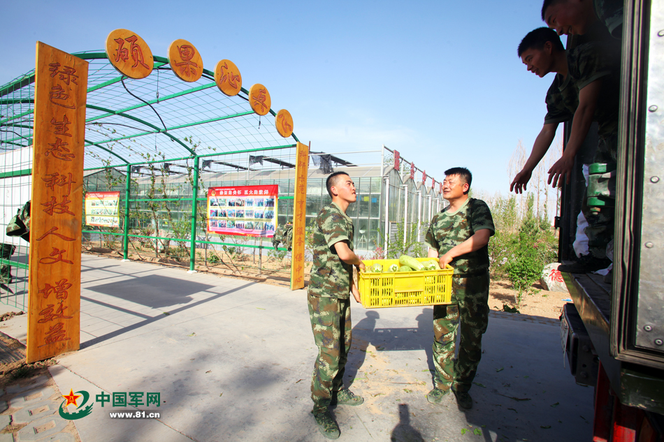 下午5点,基地司务长来温棚拉菜配送到附近中队。每次把蔬菜配送到基层中队,是孙鹏最开心的事儿。他说:“让全区官兵吃上我种的绿色蔬菜,是我最大的愿望。”