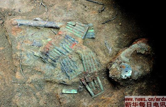 葬坑的分布都是有规律的,比如1号现场全是尸体完全腐化后移葬的,遗骸码放整齐,头骨或是安置在肢骨上方,或是在遗骸东面或者西面,随葬品非常少。