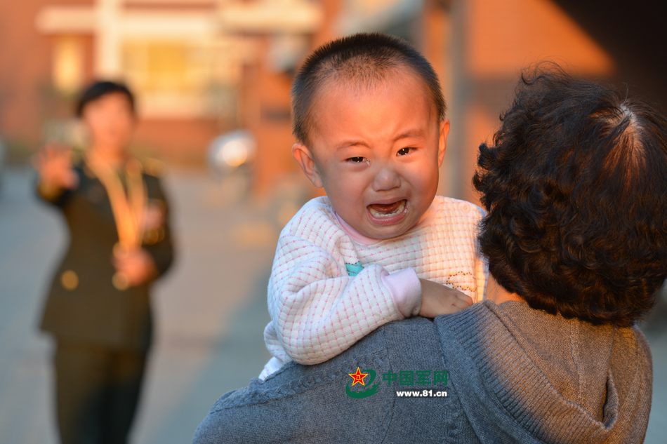 沈阳军区某通信团教员李颖要离开孩子去工作,孩子不舍母亲哭泣起来。