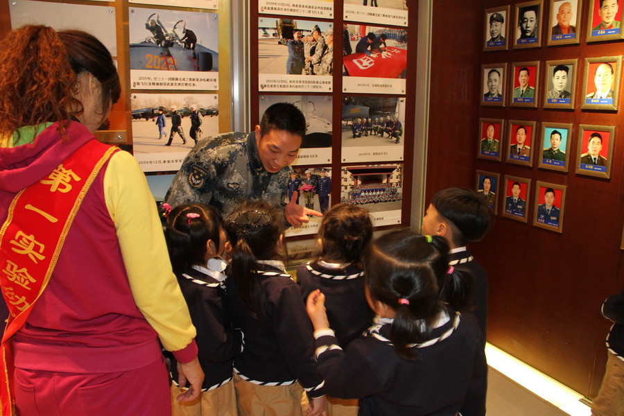 上午8时,孩子们乘校车驶入军营。他们首先在飞豹广场参观了官兵的盾牌操和表演,体验了枪支分解组装。随后,他们参观了师史馆,观看了空军招飞录像片。来自南京政治学院的博士生胡磊还为孩子们专门上了一堂题为《勿忘国耻、强国兴军》的授课。接着,孩子们在辅导员带领下参观了外场停机坪,孩子们与战鹰亲切合影。(卞飞、李飒、刘大全)