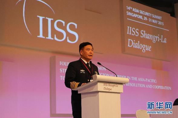 5月31日,中国人民解放军副总参谋长孙建国在新加坡举行的第14届香格里拉对话会上发表演讲。 新华社记者 包雪琳 摄