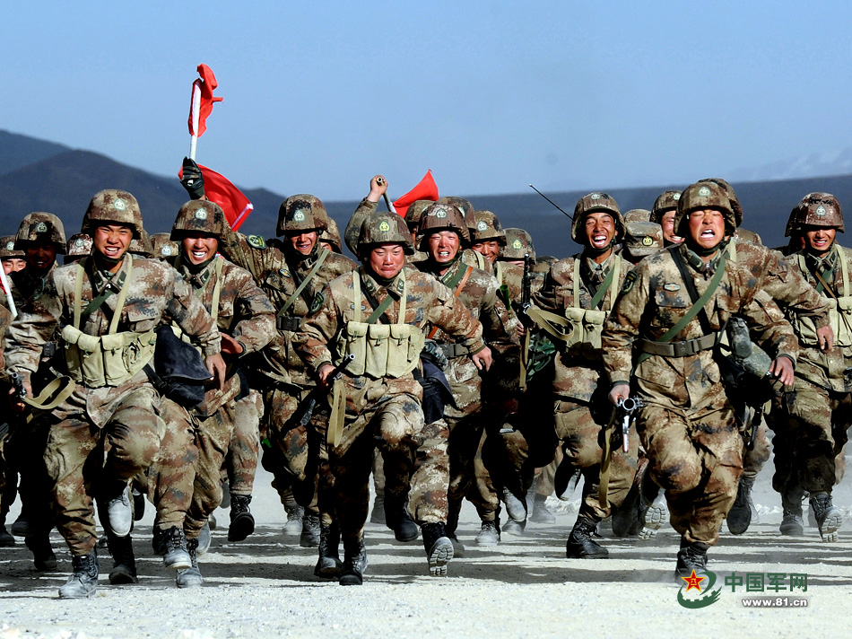 高原上的士兵也是要经常跑步的,虽然刚开始大家会感觉不适应,但是训练习惯了,你会奔跑着并微笑着冲向终点。图为高原五公里越野冲刺中的兰州军区士兵。