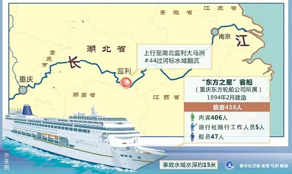 6月1日晚,从南京驶往重庆的客船“东方之星”在长江中游湖呗监利水域发生翻沉。据初步统计,事发客船共有458人,其中旅客406人。