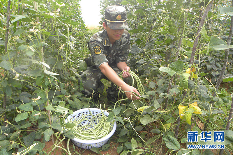 官兵在摘长豆