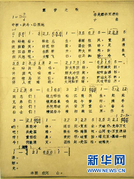 “……朔风怒吼,大雪飞扬,征马踟蹰,冷风侵人夜难眠。火烤胸前暖,风吹背后寒,壮士们,精诚奋发横扫嫩江原!伟志兮!何能消减,全民族,各阶级,团结起,夺回我河山。”这是李兆麟写的《露营之歌》,这支歌成为鼓舞东北抗联将士浴血奋战、艰苦斗争的有力武器。
