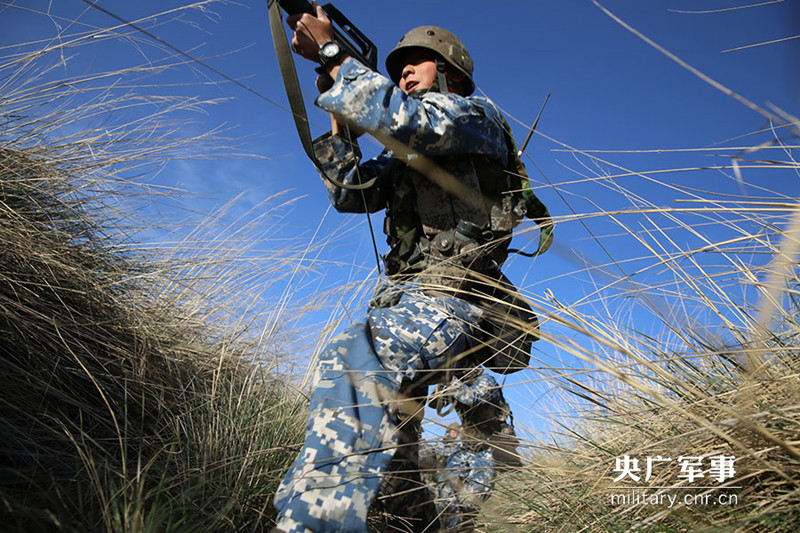 他,“蓝军”士兵,正在对场地进行搜索侦查。