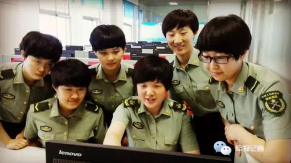 原文配图:女士官长阎苹(右三)和战友们在一起。