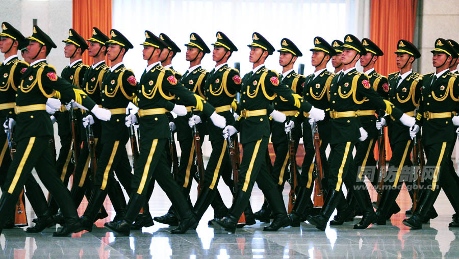2014年8月27日,中国人民解放军三军仪仗队穿着新礼宾服接受检阅。李爱明 摄