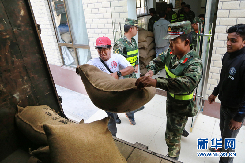 11日下午,西藏边防总队聂拉木边检站向中尼边境尼泊尔地震灾区赠送两万斤大米、3200斤食盐和200箱方便面,请尼泊尔武警和警察代为转送至巴尔比斯、科达里等离中方最近的5个受灾民众安置点,以表达边检官兵的慰问。