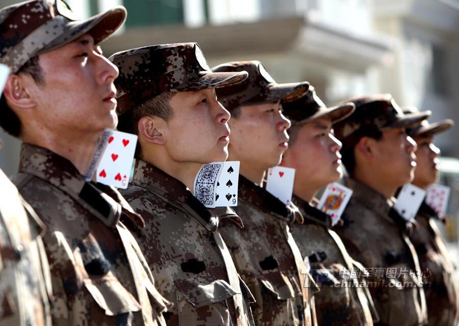 傲人军姿“炼”成记:领口扎图钉 头顶负重