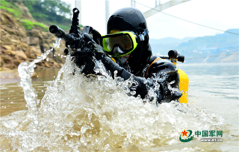 武警重庆总队船艇支队蛙人训练
