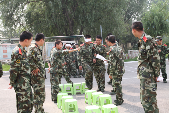 6月14日,武警北京总队第八支队组织蒙眼过板凳桥。孙雷 摄