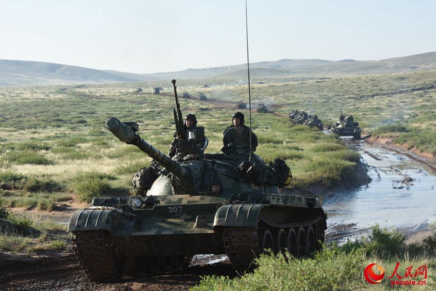 图为红军坦克群在战场机动阶段通过泥洼沼泽地带。