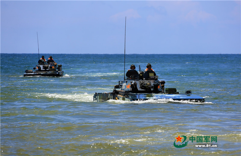 6月16日上午,正在粤西某地海训的海军陆战队某旅组织两栖装甲装备、冲锋舟进行泛水编波、抢滩登陆等课目演练,锤炼部队打赢能力。