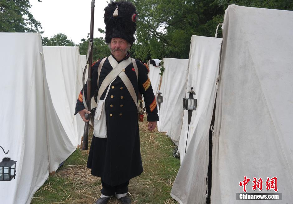 当地时间2015年6月19日,比利时布赖恩拉勒,历史爱好者重现战争场面,纪念滑铁卢战役200周年。在为期两天的纪念活动中,5000名历史爱好者、300匹马及100门大炮重演了滑铁卢战役的两个阶段。