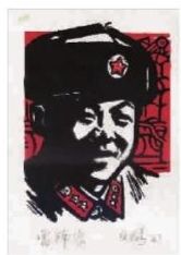 后来他家搬去了苏州河畔的“半岛”,我去得就少了。那时老先生名重绘画界。但是每有版画活动,先生年长了,还是坐着轮椅来参观。“人美”出版了他的画集,我到他家看到了这本版画集,其中有老先生六十年创作的版画“雷锋像”。“刻得真好,”我对着这一页看了好久,“我想得到这张雷锋像。”老先生说“怎么你要这个”?我便把自己平日里喜欢学雷锋的故事讲给他听,他点点头。便送了我这张签名的“雷锋像”。