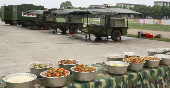 “今年跟往年不一样,我们练的就是实战化。往年我们聘请地方大厨教授厨艺,练刀工、学雕花,这样制作的菜品确实好看。但是在战场上,我们不可能去捣腾这种中看却不实用的技巧。全军在向实战化聚焦,我们机动师要建设武警部队的‘野战军’,我们就在琢磨这个‘野战军’炊事保障需要的是什么?有什么要求?”“今年我们聘请厨师教授的都是现实操作性很强的技术,譬如聘请驻地有名的‘好风味’快餐店厨师教授队员们如何在最短时间内配齐、制作五个菜品,如何调剂确保符合绝大部分人的口味。这些才是我们今年集训的重点。”