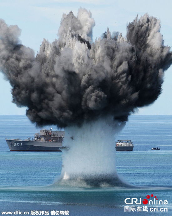 日本自卫队进行海上扫雷训练 数百队员参加(高清组图)