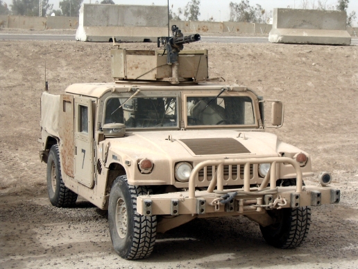 悍马(军用版),高机动性多用途轮式车辆(英语:High Mobility Multipurpose Wheeled Vehicle,缩写HMMWV或Humvee),是由AM General为美国军方生产的全轮驱动车辆。1991年,历经海湾战争一役,其优异的机动性、越野性、可靠性和耐久性与各式武器承载上的安装适应能力,间接促使该款汽车声名大噪。部份军迷更将其冠上“越野之王”的美誉。