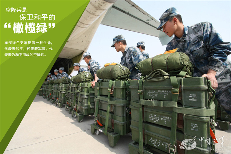 橄榄色象征着生命,蕴含着和平,也代表着为和平而战的人民解放军,空降兵用忠诚和热血为美丽山河筑起不朽的钢铁长城!这是一种神圣的颜色,更是一个神圣的使命!