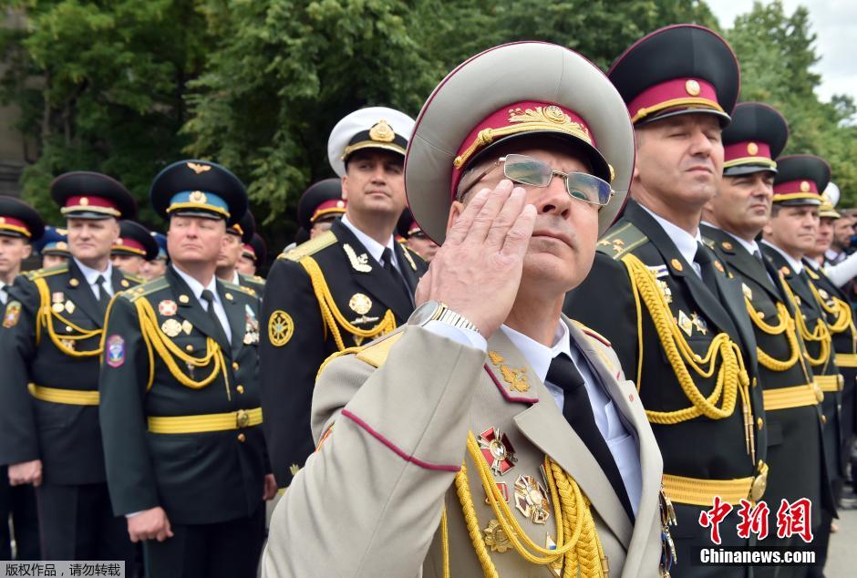 当地时间2015年6月16日,乌克兰基辅,350名乌克兰国防大学毕业生参加毕业典礼。