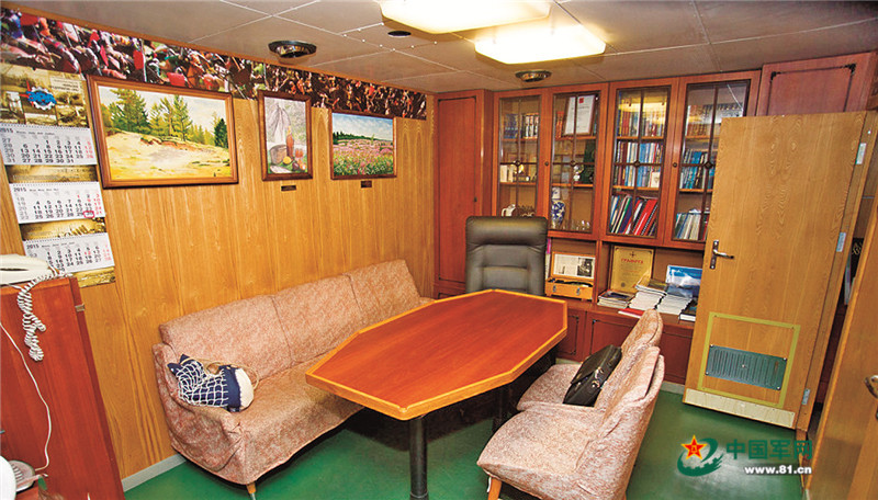 军官会客室,看起来环境舒适,空间也足够大,很难想象这是潜艇里的房间。