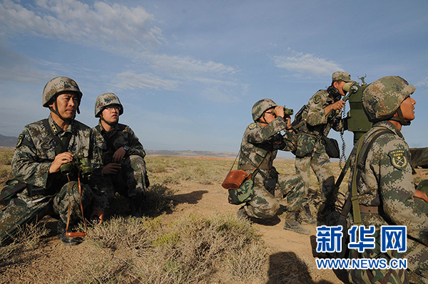 “火力—2015·山丹”参演部队搜索空中目标。新华社记者 黎云摄