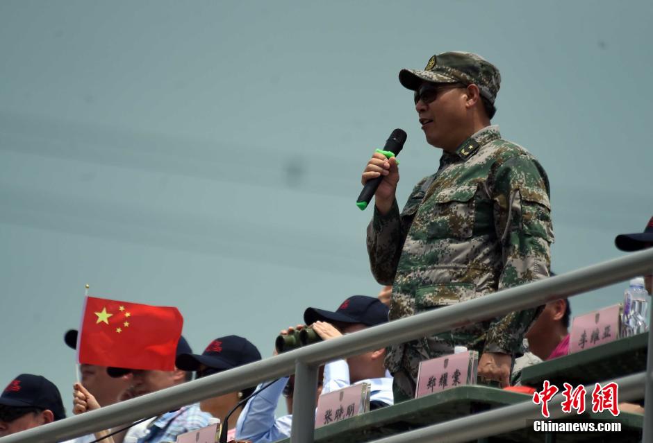 7月4日上午,中国人民解放军驻香港部队在青山训练场组织“香江卫士—2015C”联合军事演习,邀请了香港各界500余名嘉宾现场观摩。该演习是青山综合训练首次开放活动。图为驻港部队司令员谭本宏少将对本次演习讲评。 中新社发 张宇 摄
