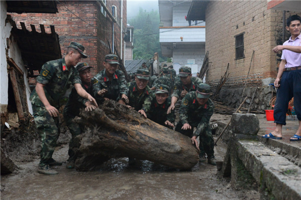接到当地党委、政府支援请求后,武警广东总队韶关支队迅速启动防汛救灾应急响应机制,支队长李何荣率领官兵携带防洪装具迅即赶赴救灾现场。