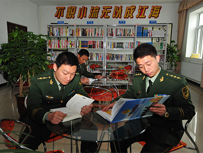 官兵在警营图书室看书