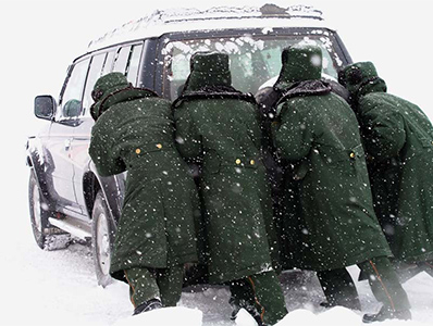官兵救助被困车辆