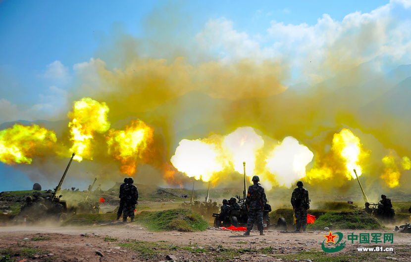 盛夏时节,成都军区某防空旅将部队拉到川西某高原陌生地域组织实弹射击训练,在高强度、高难度环境下,锤炼部队实战能力。图为7月6日,该旅组织高炮分队对空中目标进行集火射击。