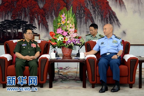 7月8日,中央军委副主席许其亮在北京八一大楼会见老挝国防部长森暖·赛雅拉。 新华社记者 张领摄
