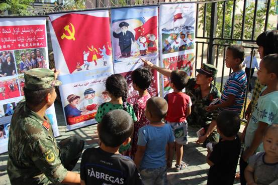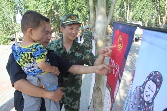 新华网消息:7月8日上午,吐鲁番支队官兵深入驻地亚尔镇英买里村开展“三送三共”活动。