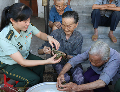 广西钦州边检站官兵端午节前慰问敬老院孤寡老人