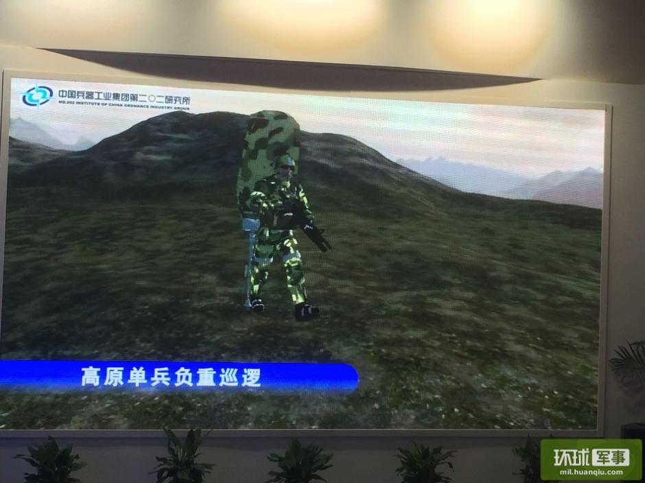 7月7日,由中国科学技术协会和中国兵器工业集团公司主办的首届中国军民融合技术装备博览会在北京国家会议中心开幕。在兵器集团202研究所展台处,记者看到屏幕上正在播放一段中国国产单兵外骨骼系统的宣传片,这是类似国产单兵装备的首次正式曝光。(摄影:刘昆)