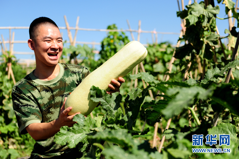 “艾圆圆,瞧瞧我种的黄瓜,都能顶你种的三根黄瓜那么粗。”14日,在新疆边防总队训练基地农副业生产试验田中,科学种养殖培训班战士答雄采摘下自己种的“超级黄瓜”向战友艾圆圆炫耀。由于新疆边防总队诸多基层单位地处高原、戈壁、荒漠边境一线。普通种植方法种出的农作物适应不了特殊环境气候,这个训练基地就利用集中组织各基层单位种养殖战士培训契机,邀请驻地科学种养殖专家手把手指导战士学习实践。经过3个月努力,战士们利用科学种植技术精心培育出的黄瓜、丝瓜、西葫芦、辣子、西红柿、四季豆等农产品喜获丰收,外观、色泽、口感比普通农产品更好。