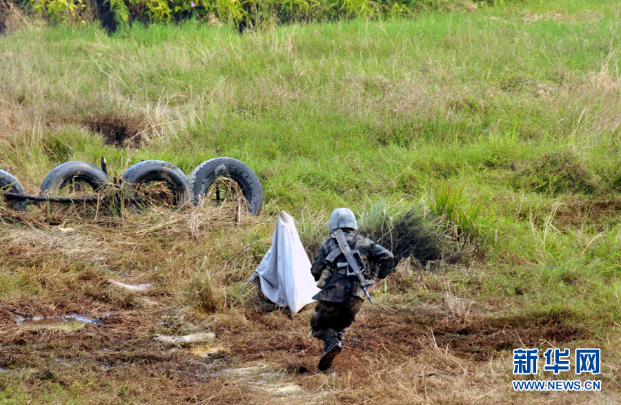 7月15日,狼牙山五壮士连举行步兵特战化综合科目演练。图为士兵进行障碍爆破。杨茹 摄