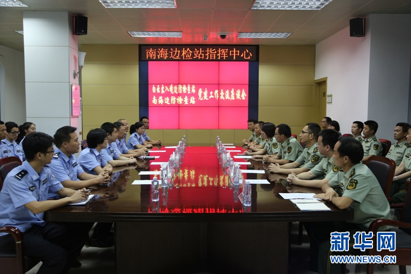 16日,广州白云出入境边防检查站一行16人与广东边防总队南海边检站携手开展“蓝绿相约促党建·云海共建谱新曲”主题交流活动。