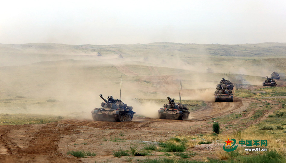 朱日和演习:战场机动途中的坦克集群