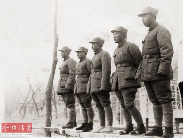 八路军129师和太行军区领导在新年团拜会上,自左至右为刘伯承、邓小平、蔡树藩、李达、王树声。(资料图片)