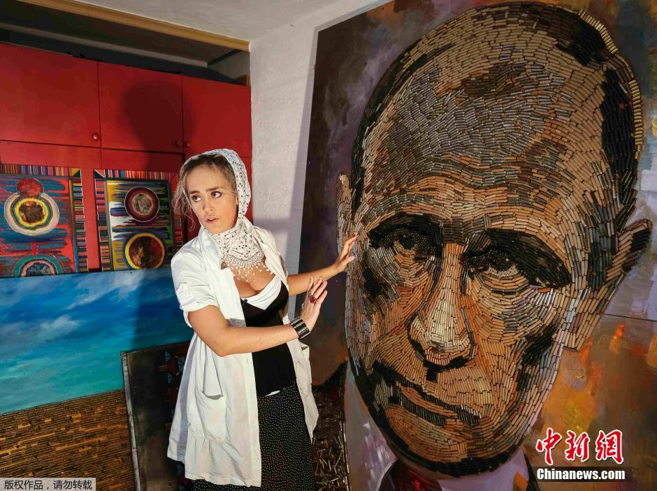 美女艺术家使用5000枚弹壳创作巨幅普京肖像