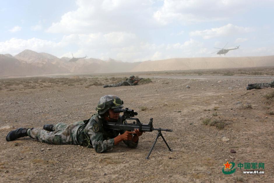 解放军机降与反机降对抗 枪装激光发射器