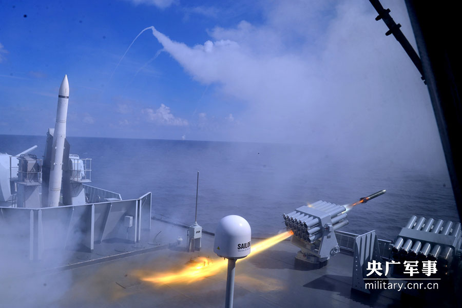 武汉舰发射干扰弹。 高毅摄