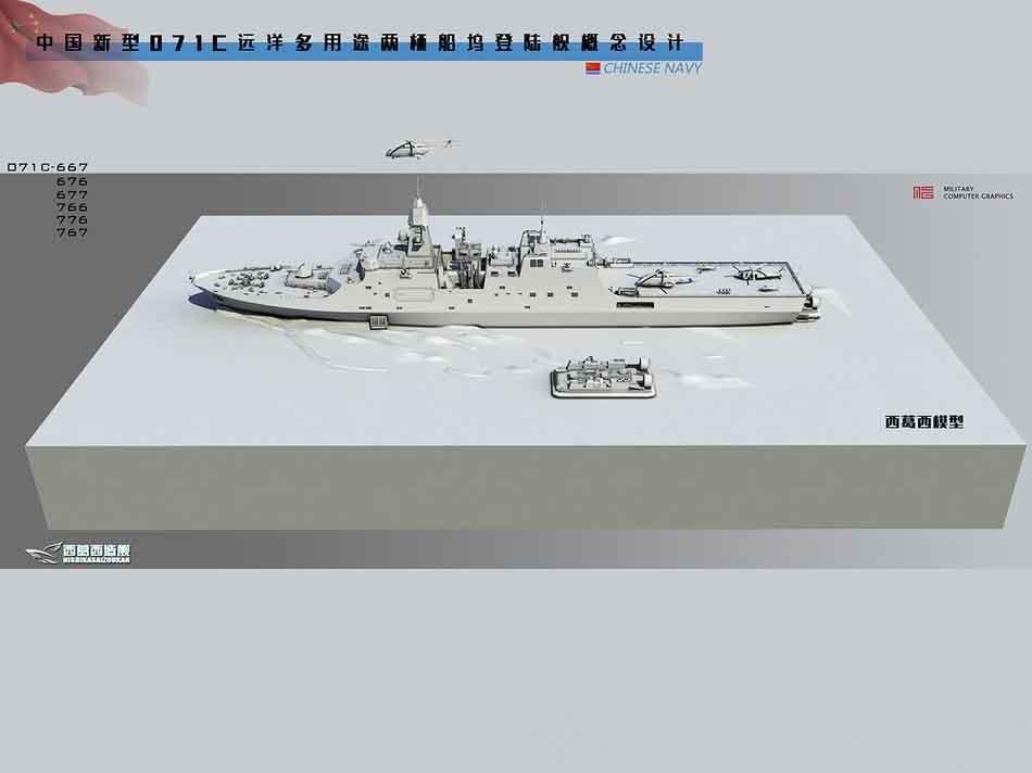近日,网络CG图高手西葛西造舰做了一款中国071C新型船坞登陆舰的效果图,仔细观察可以发现,其和已服役的071有着巨大变化。